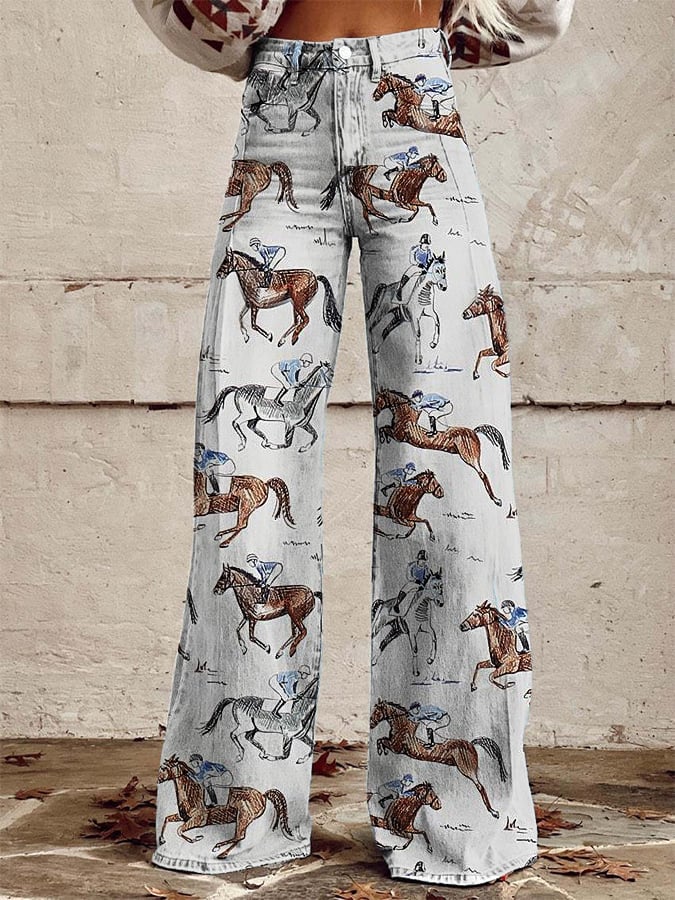Women's Jockey Club Design Casual Printed Wide Leg Pants
